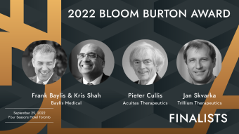 “We look forward to celebrating this year’s finalists –Frank Baylis and Kris Shah, Pieter Cullis and Jan Skvarka at the 2022 Bloom Burton Award Gala!”